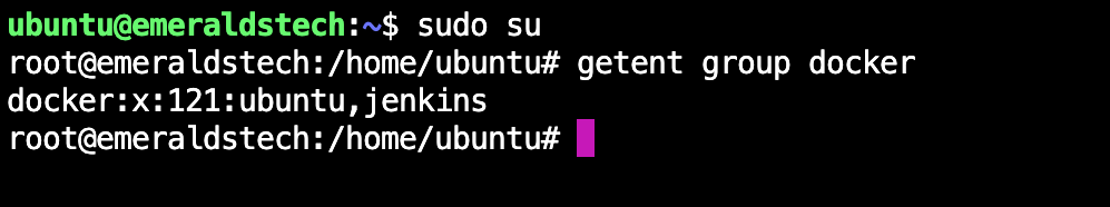 Verify the existence of the "docker" group. Use the command getent group docker.